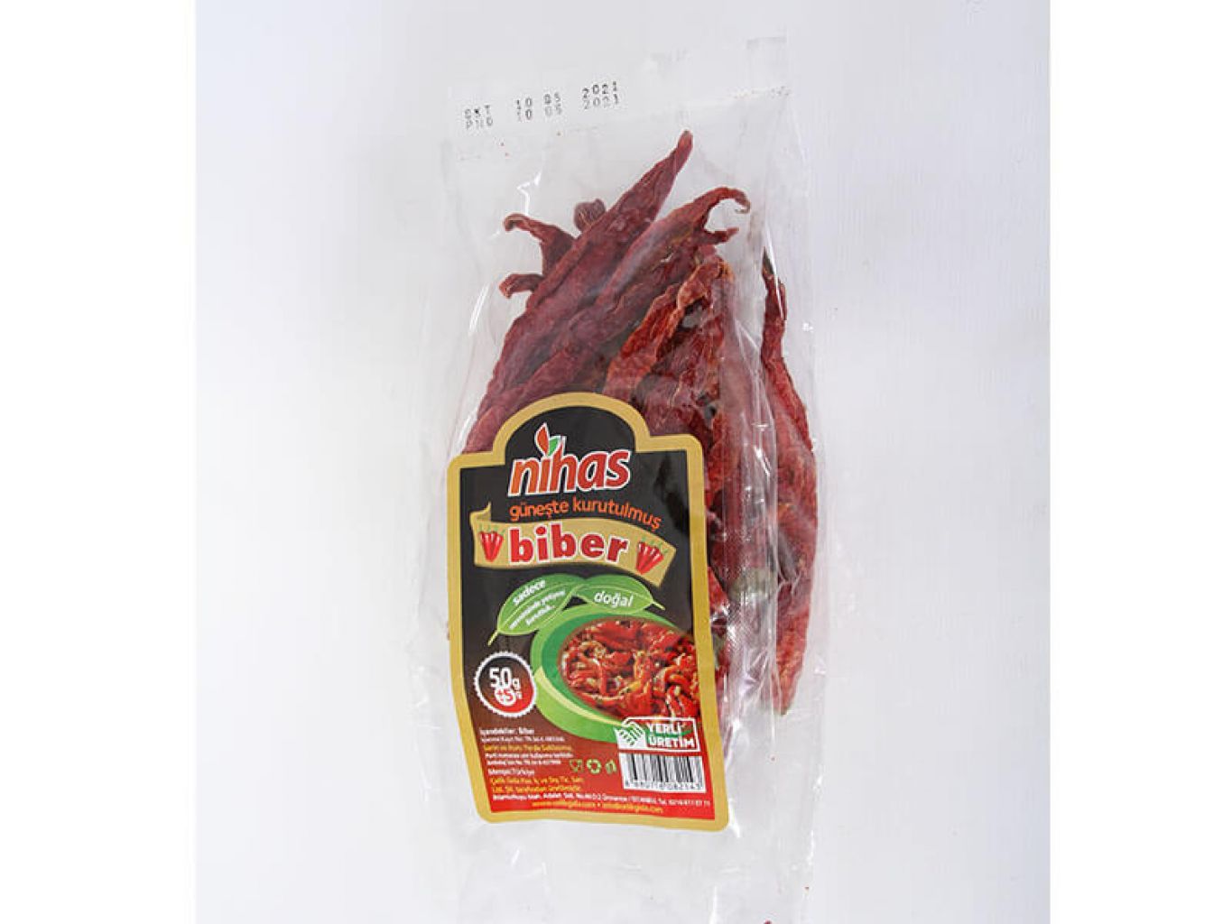 ÜRÜN:KURUTULMUŞ BİBER ÜRÜN CİNSİ:KIZARTMALIK MENŞEİ:TÜRKİYE PAKET AĞIRLIK:50 GR